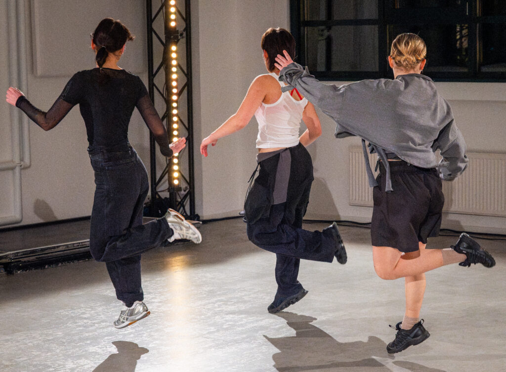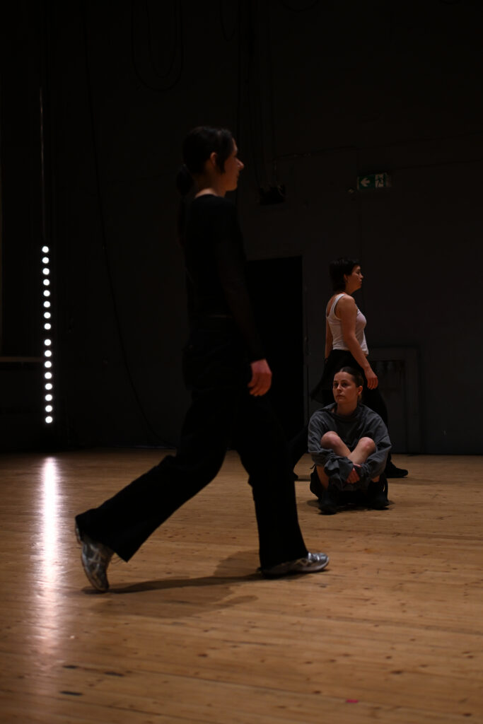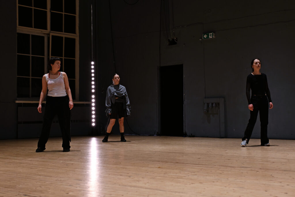 Three performers try to remember the past, copy each other, move through space with momentum, carry on and repeat.
